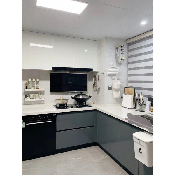 The countertop material options for the Modern Kitchen Cabinet include artificial quartz, granite, and marble, providing you with a range of choices to suit your style and budget. Whether you prefer the luxurious look of marble or the durability of granite, you can customize the countertop to match your preferences.